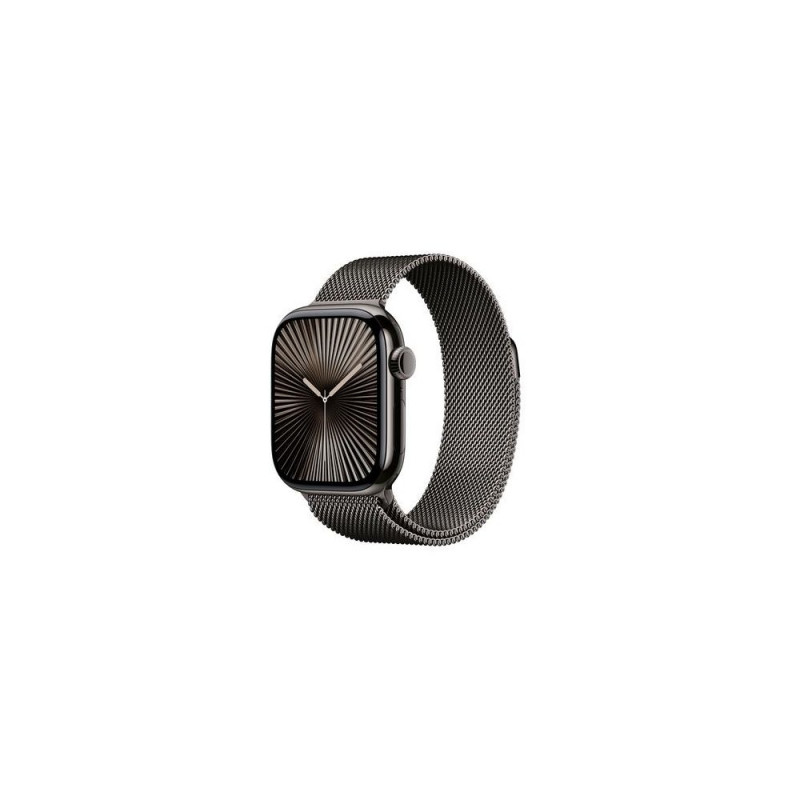 <b>Thinstant classic.</b>Apple Watch Series 10 GPS + Cellular 42mm Slate Titanium Case with Slate Milanese Loop. Display technology: OLED, Display resolution: 374 x 446 pixels, Touchscreen. Flash memory: 64 GB. Wi-Fi. GPS (satellite). Weight: 34.4 g. Waterproof up to: 50 m, Band material: Stainless steel, Band colour: Grey. Operating system installed: watchOS 11