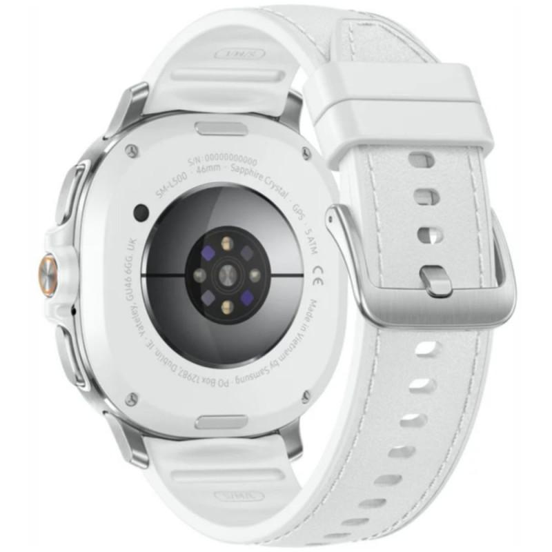 The watch is built with a stainless steel case and a durable Sapphire Crystal display, ensuring both longevity and elegance. The 46mm model features a vibrant Super AMOLED display with up to 3,000 nits of brightness, providing excellent clarity even in bright sunlight. The device is powered by a new, more efficient 3nm Exynos W1000 processor with 2 GB of RAM and 64 GB of internal storage, ensuring smooth performance and ample space for apps and files.