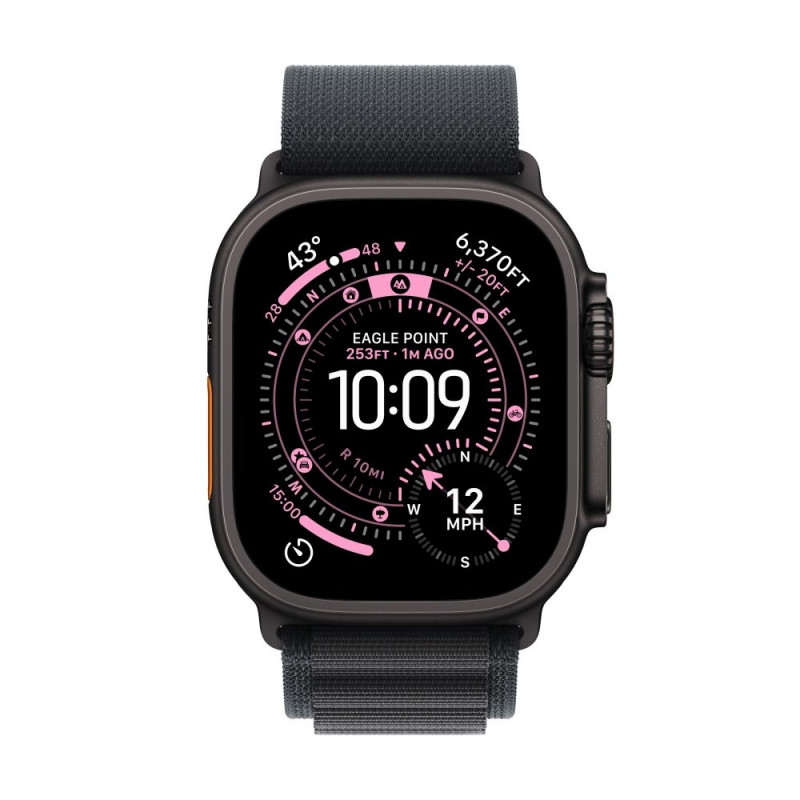 | Display | Always-On Retina display with wide-angle OLEDs and LTPO3; 1Hz refresh; Active area (422 by 514 pixels, 326 pixels per inch); Flat sapphire crystal display; Up to 3000 nits peak brightness; 1 nit minimum brightness; Night Mode for Apple Watch Ultra faces ( |