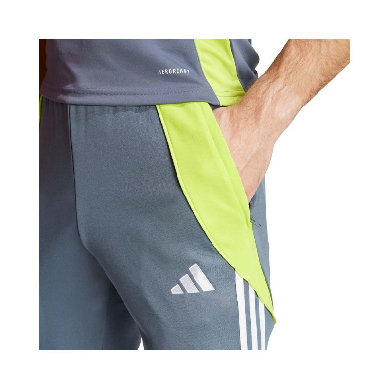adidas Tiro 24 Men's Pants, Gray and Lime IV6945. These adidas men's pants from the Tiro football collection are perfect for training. Quick-drying fabric. Aeroready technology wicks away moisture. Regular fit. Mid-rise, elastic waist. Side pockets with zippers. Zippered leg openings. Material: 100% recycled polyester