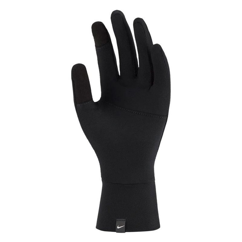 Rękawiczki Nike sprawdzą się podczas aktywności. Elastyczny materiał z technologią Dri-FIT dba o odprowadzenie nadmiaru wilgoci do zewnętrznych warstw. Siateczkowe wstawki pomiędzy palcami. Wykończenie konstrukcji przylegającymi mankietami. System zlokalizowany na palcu wskazującym i kciuku pozwala na swobodną obsługę ekranów dotykowych bez konieczności zdejmowania rękawiczek. Odblaskowe detale poprawią widoczność po zmroku.