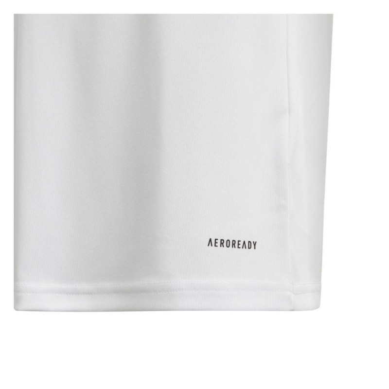 Koszulka dla dzieci adidas sprawdzi się podczas treningów. Szybkoschnąca tkanina z technologią Aeroready, która odprowadza nadmiar wilgoci. Regularny krój. Paski i logo na rękawach. Przód i tył bez napisów.