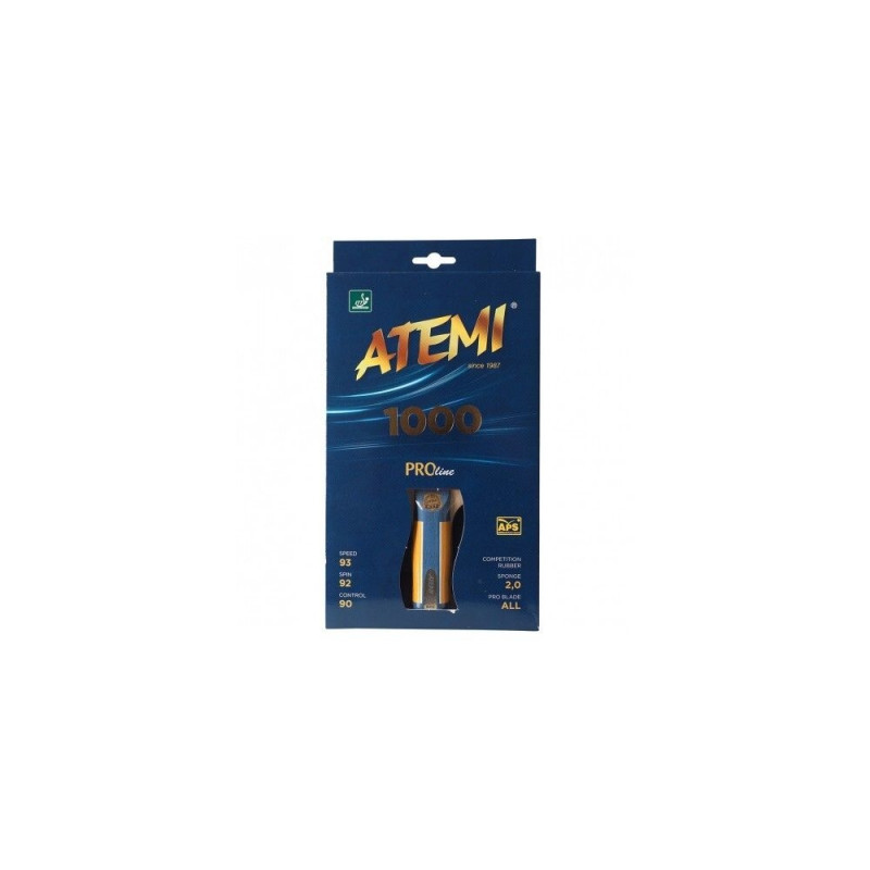 Lauatennise reket Atemi 1000 on hea valik aktiivsele harrastajale. Naturaalkautšuki põhjal valmistatud kattekumm Super-Champ (ITTF). APS (Additional Power System) käepide. Valmistatud 5-kihilisest vineerist (aafrika limba, vääris-abahhipuu). Kattekummi paksus koos vahtmaterjaliga on 2.0 mm.
