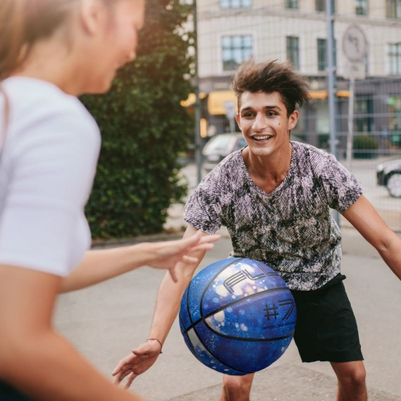 - The standard size is the perfect option for all basketball enthusiasts. This ball is suitable for both adults and youth. It's perfect for late-night training sessions or late-night games, and it adapts perfectly to any surface.