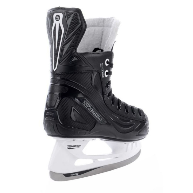 TECHNICAL PARAMETERS Intended use Ice hockey Blades TEMPISH 7000 coated steel Outer material Highly resistant hard composite thermoplastic material Inner material Brushed nylon CAMBRA, anatomical insole Tongue Anatomical two-piece tongue, 3D construction, material - special resistant PVC + felt 9 mm Fastening system Laces Lining Anatomical with foam padding in the ankle area.