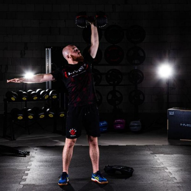 The SR52 HMS is an adjustable dumbbell. The set includes a bar, 10 plates, and a stand. This device is ideal for home workouts, but it can also be used in the gym, replacing an entire rack of traditional dumbbells. An innovative plate mounting system allows for quick and easy weight changes during a workout. Unlike traditional dumbbells, removing and attaching the plates does not require the need to loosen the clamps or attach and remove the plates each time. With the SR52, simply place the barbell on the stand and use two knobs to set the desired weight. When you lift the barbell again, the plates corresponding to the selected setting will be on it. The product is made of the highest quality materials. A major advantage of the SR52 HMS is the ergonomically shaped handle covered with non-slip material. HMS adjustable dumbbells are an innovative solution for strength sports enthusiasts – 10 plates allow for flexible weight adjustments depending on the user's needs.