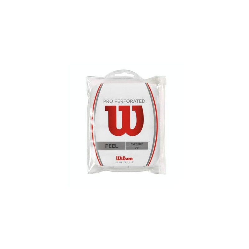 Pro Overgrip Perforated puts a twist on the classic best-selling overgrip by featuring perforations for improved feel, moisture absorption and a greater capacity for quick drying. Players who sweat it out on the court and struggle to maintain a firm grip will find this grip particularly appealing, as it offers a tacky feel and lasts an impressively long time.Wilson Pro Overgrip Perforated. Type: Overgrip, Best uses: Tennis, Product colour: White. Quantity per pack: 12 pc(s)