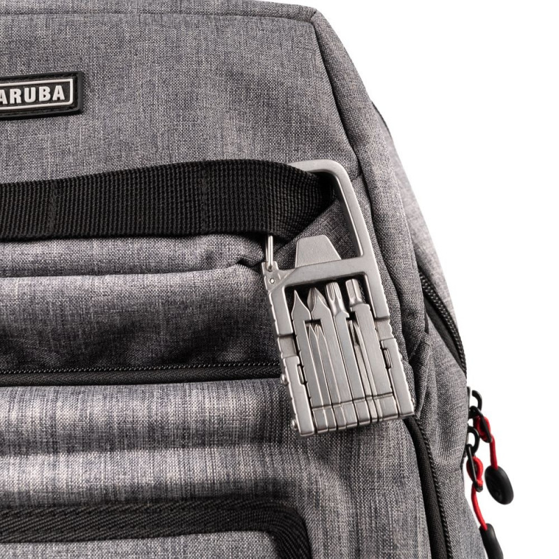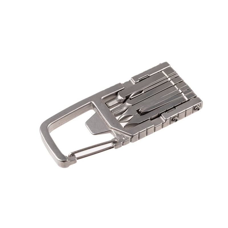 See mitmeotstarbeline karabiin pakub mitmeid kasulikke funktsioone, mis võivad erinevates olukordades kasuks tulla. Selle hulka kuuluvad pudeliavaja, kruvikeeraja, Alleni võti, joonlaud, nuga ja palju muud kasulikku tööriista. Selle mitmekülgse tööriista abil saad hõlpsasti reguleerida oma varustust, teha väiksemaid parandusi või avada isegi värskendava joogi oma seikluste käigus.