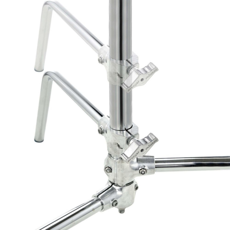 C-Stand kõrgust saab reguleerida, mis võimaldab seda kasutada erinevates võtteolukordades. Maksimaalse kõrgusega 328 cm mahutab see lihtsalt enamiku valgustusseadmeid. Statiivil on ka 5/8" kinnituskoht 3/8"-16 keermega, mis teeb selle ühilduvaks laia valiku valgustus- ja kinnitusseadmetega.