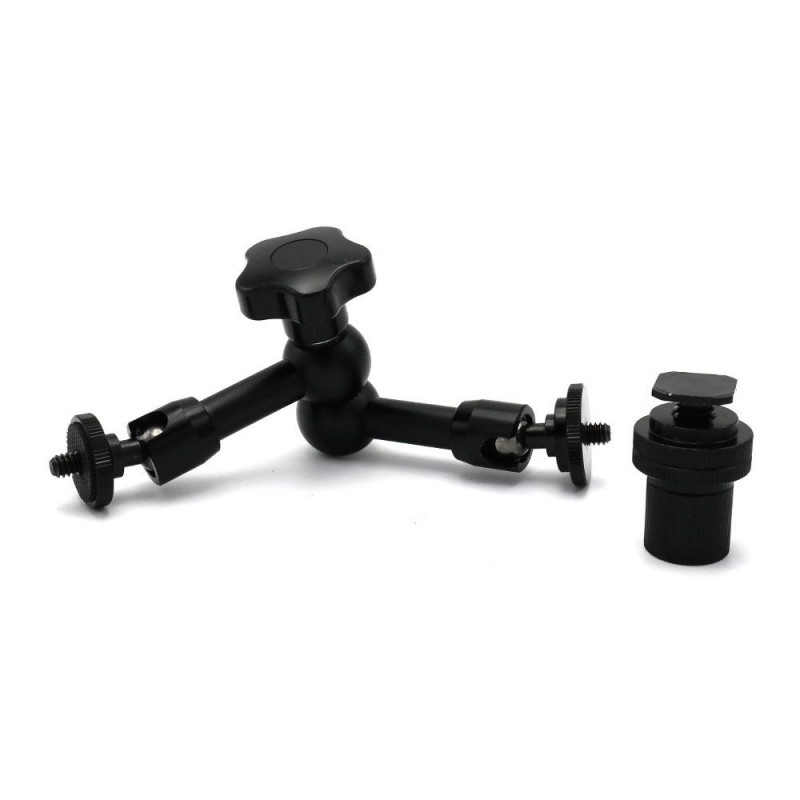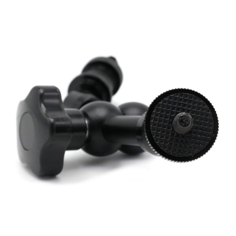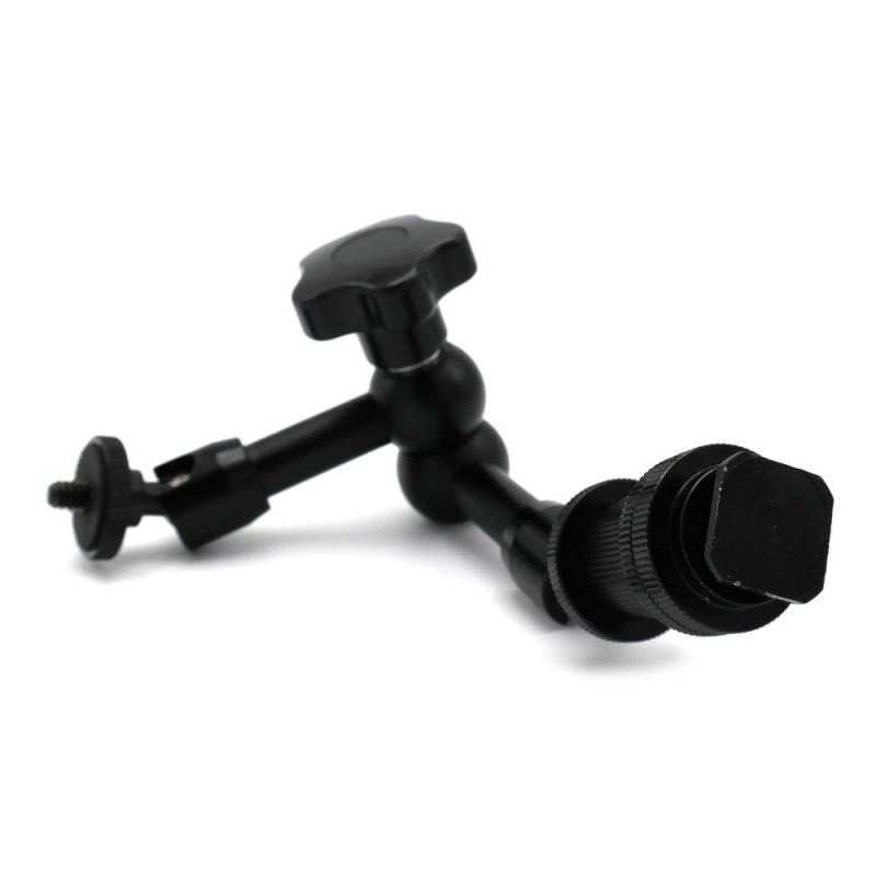 Caruba Magic Arm 7" pööratava nupuga on paindlik vars, mis võimaldab kinnitada erinevaid lisatarvikuid sinu kaamera külge. Näiteks saad oma kaamerale kinnitada välise monitori või valguse. Vars kinnitub kaamera külge välgupesa (hot shoe) ühenduse abil ning sellel on kaks standardset 1/4" keermega ühendust. Varsi pikkus on 18 cm ning sellel on tugev lukustusnupp, mida on lihtne avada.