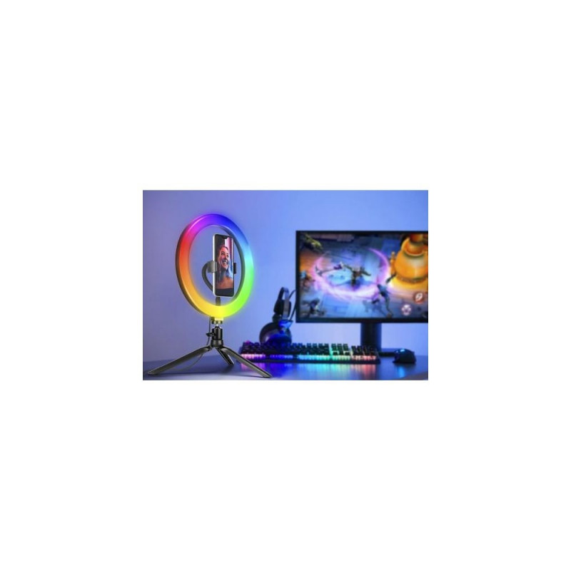 <b>TRACER Ring RGB ring light with stand</b><br>The LED ring light is a unique type of steady light that allows you to evenly illuminate the photographed object. The ring light with modern LEDs accurately reproduces colors and imitaToode on arhiivis, kuvatakse vaid informatiivsel eesmärgil.