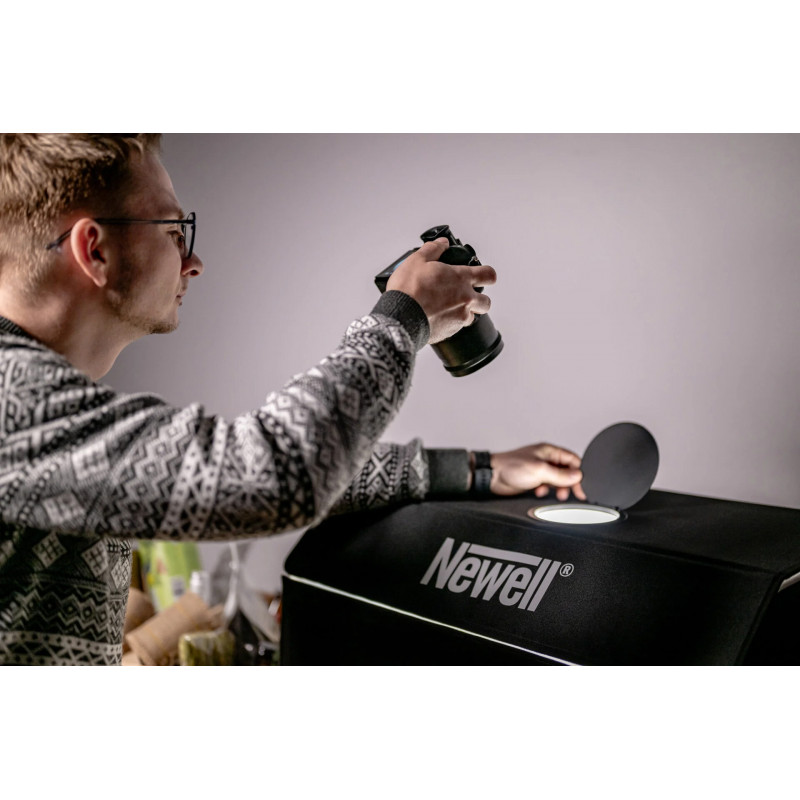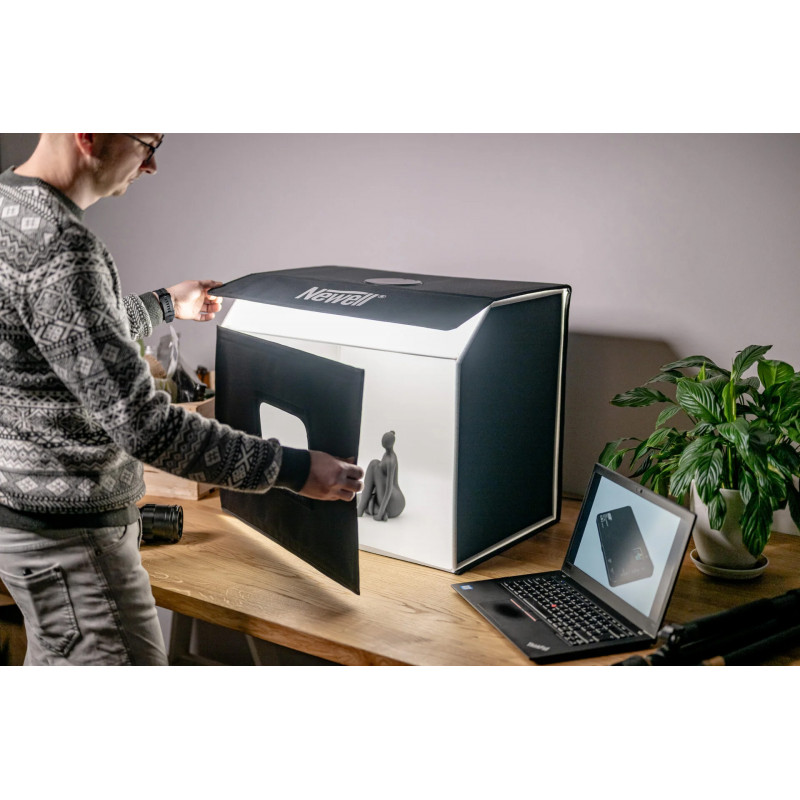 Newell M60 on lahendus, mis on mõeldud iga tasemega kasutajatele. Selle kasutamine on lihtne ja ei nõua eriteadmisi. Õigetesse kohtadesse paigutatud sisseehitatud LED-paneelid ja hajutav kangas teevad kogu töö Sinu eest ära, kõrvaldades varjud ja peegeldused. Olenemata sellest, kas Sa alles alustad fotograafiaga või oled juba professionaal, Newell M60 võimaldab Sul saavutada suurepäraseid tulemusi ilma igasuguste komplikatsioonideta.