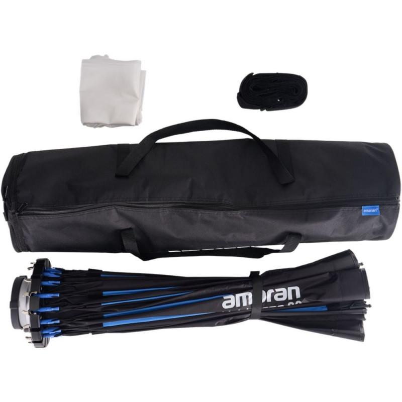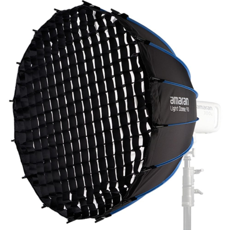 amaran Light Dome 90 sisaldab kõiki vajalikke komponente pehme valguse loomiseks, kõik mugavalt kaasaskantavas kotis. Loo loomulik kuma kaasasoleva difuuseriga või lisa sügavust komplekti kuuluva kärgvõrega.