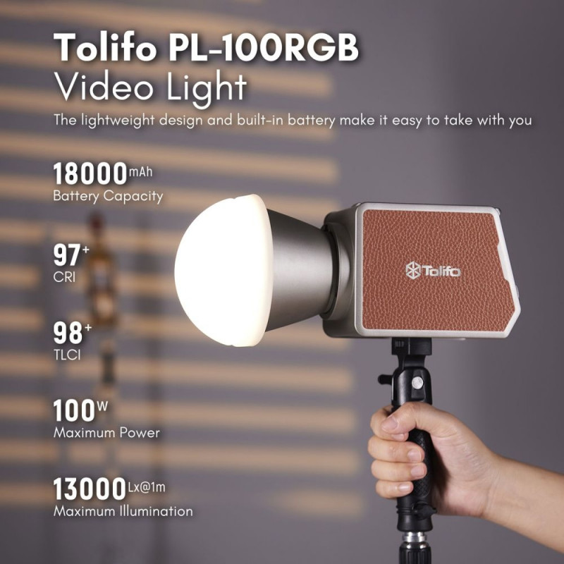 Tolifo PL-100RGB Palm LED kasutab COB-LEDe, mille võimsus ulatub kuni 100W-ni. Seadmel on reguleeritav värvitemperatuur (2 700K–6 500K) ja heleduse seadistus (0–100%). RGB-režiimis saab seadistada värvitooni (0–360°) ja küllastust (0–100%). 20 sisseehitatud valgusefekti võimaldavad kiiresti luua erinevaid meeleolusid ja annavad vabad käed loominguliseks valguskujunduseks.