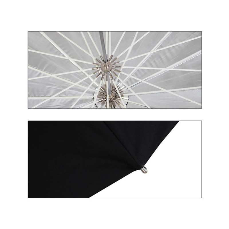 High-quality silver reflective umbrella with a diameter of 185 cm and a depth of 50 cm. The frame consists of 16 durable fiberglass rods, providing increased durability and a strong surface tension.Osta kohe, viimased eksemplarid laos!