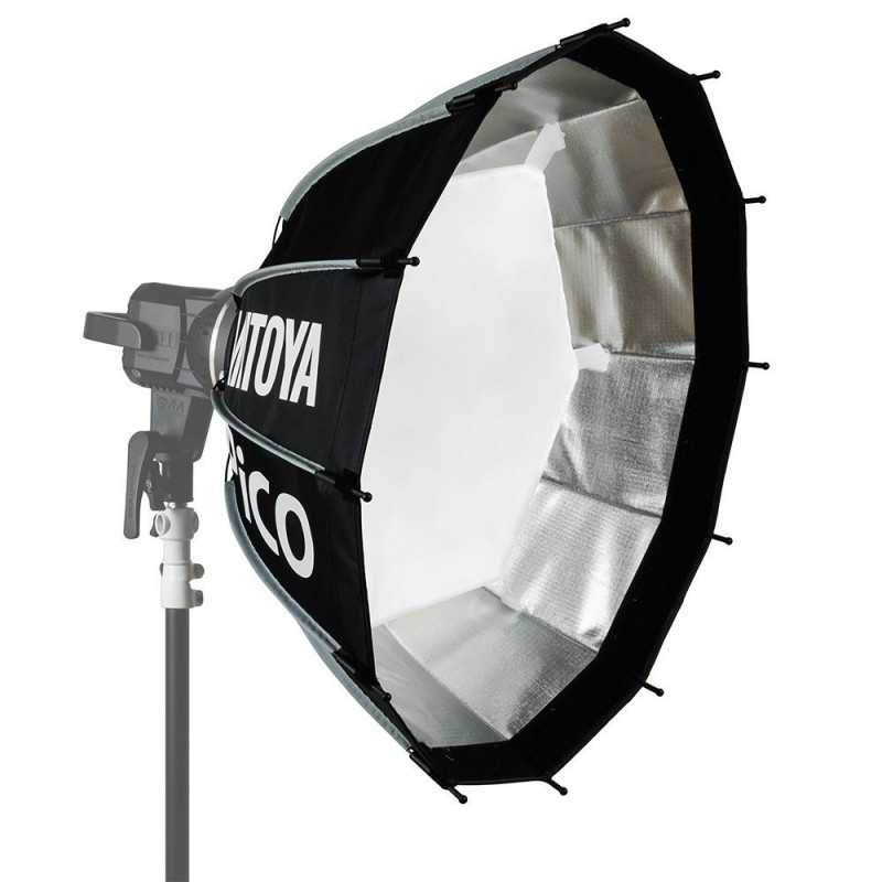 MITOYA PICO softboxi läbimõõt on 65 cm ning sellel on integreeritud BOWENS adapter, mis tagab ühilduvuse erinevate valgusallikatega. Komplekti kuuluvad kaks takjakinnitusega difuusorit, kärg ning kiire kokkupaneku ja lahtivõtmise mehhanism, mis teeb seadistamise ja hoiustamise lihtsaks.