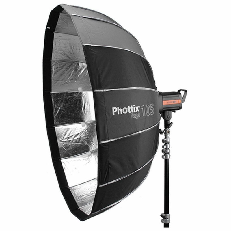 Phottix Raja Quick-Folding Softbox 105 on kaasaskantav valgusmodifikaator, mis on mõeldud stuudiovalgustuseks ja sobib hästi portreefotograafiaks. See on vastupidava konstruktsiooniga, lihtsasti kokkupandav ning komplektis on kaasaskantav kott mugavaks transportimiseks.