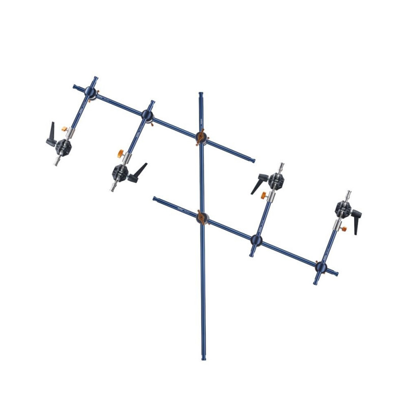 The GK50 Multi Reflector Array Grip Kit includes various extension rods and clamps designed for mounting and positioning lighting equipment. It provides flexibility in setup with multiple ball joint arms and knobs for secure adjustments.Osta kohe, viimased eksemplarid laos!