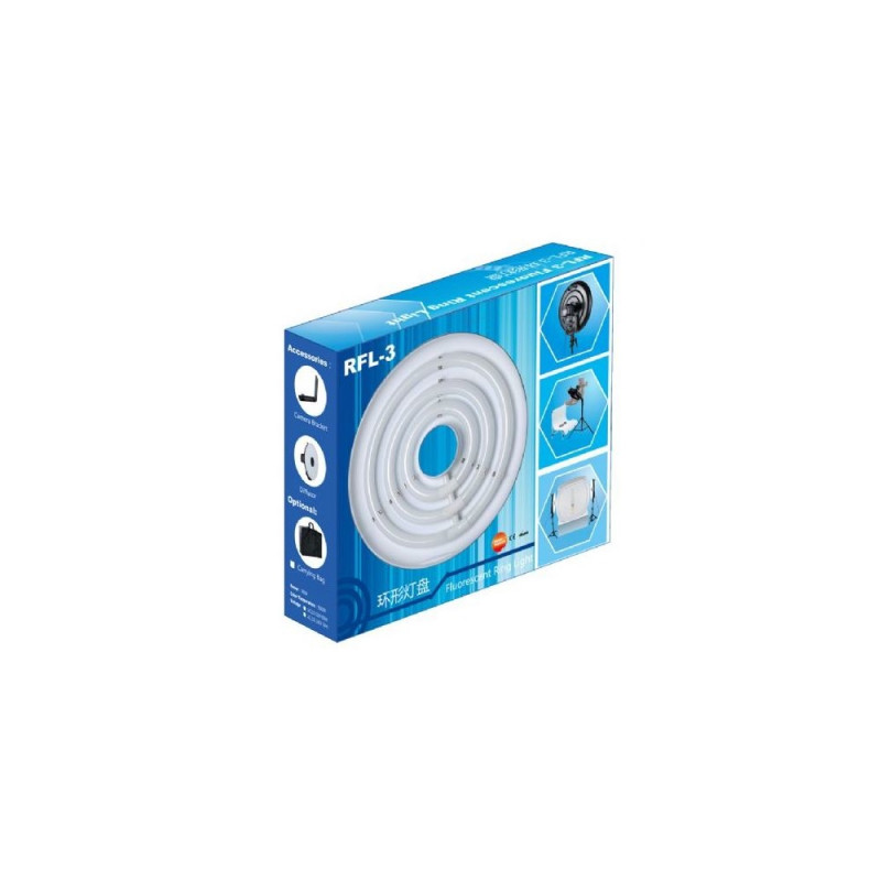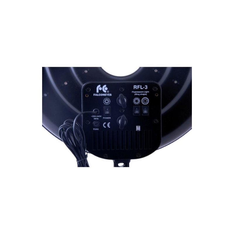 Falcon Eyes RFL-3 ring light: 3 lamps (22, 28, 40W), great for photos/videos. Lightweight at 1.6kg, direct 230V plug-in. Comes with camera bracket for optimal lighting, adjustable brightness, tilting bracket. Perfect for portraits and beauty shots.Osta kohe, viimased eksemplarid laos!