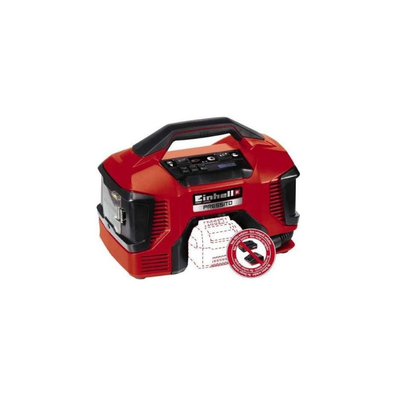Einhell PRESSITO on kompaktne ja võimas hübriidkompressor, mis sobib suurepäraselt mitmesugusteks täispuhumis-, puhastus- ja kinnitustöödeks kodus, töökojas või liikvel olles. See mitmekülgne seade töötab nii 18V Einhell Power X-Change akuga kui ka 220V võrgupingelt, pakkudes teile maksimaalset paindlikkust ja vabadust.
