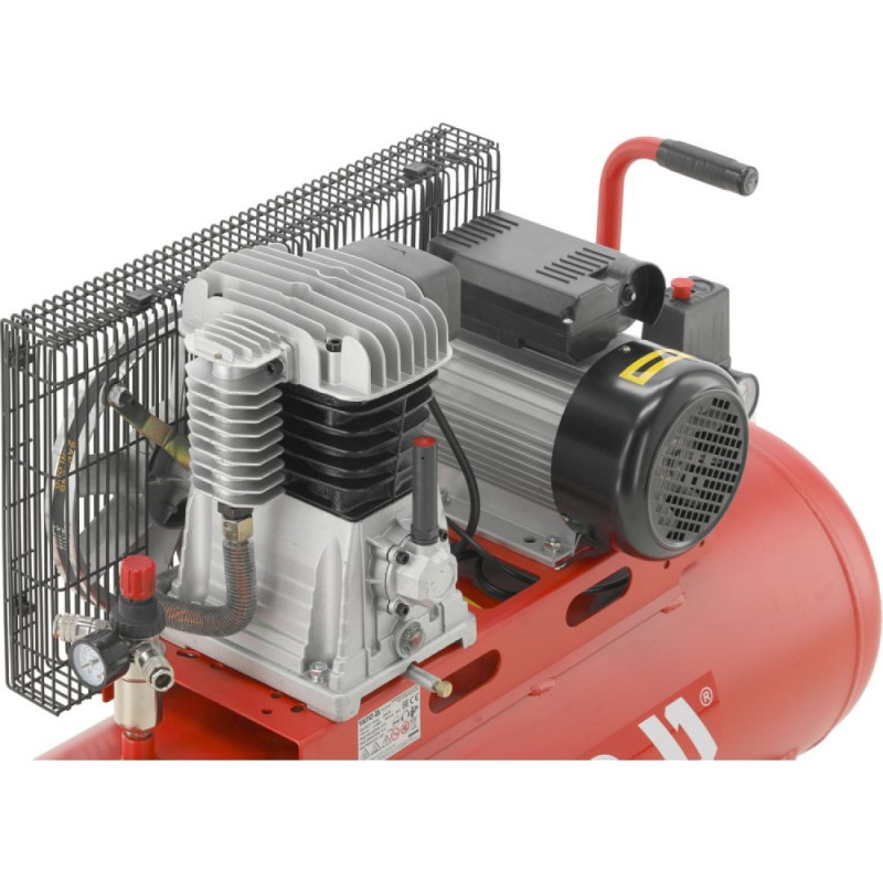 Õlikompressor kahe ühendusega ja rõhukontrolliga. Seda kasutatakse suruõhu seadmete käitamiseks, puhurite ja pindade puhastamiseks. See on hindamatu toetaja tööstuses, ehituses, töökohtades ja põllumajanduses.