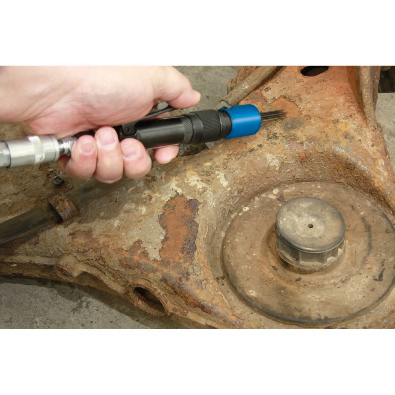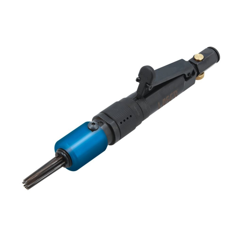 Uus Laser mini pneumaatiline nõelotsik on varustatud 13 x 1,4 mm nõeltega. Lisaks reguleeritava kiiruse reguleerijaga ning kompaktse ja kerge korpusega, mis teeb sellest ideaalse peene või keeruka töö jaoks ning kitsastes kohtades kasutamiseks. Lisaks on sellel ohutuslukk juhusliku kasutuse vältimiseks, 360° reguleeritav väljalase ning 1/4' BSP õhuvõtuava. Sobib pindade puhastamiseks ja rooste eemaldamiseks metallpindadelt ja komponentidelt, sealhulgas pidurisadulatelt, ABS-kinnitustelt ja laagrikorpustelt.