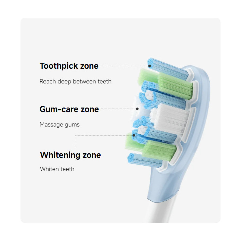 - Teemandikujuline harjaste paigutus tagab parema hügieeni, keskendudes olulistele puhastusvöönditele