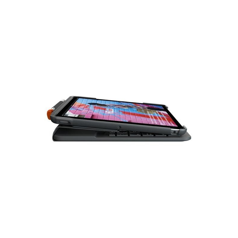 <br />Logitech Slim Folio for iPad (7th, 8th, & 9th generation). Keyboard layout: QWERTY, Keyboard language: Danish, Finnish, Norwegian, Swedish, Key pitch: 1.7 cm. Brand compatibility: Apple, Compatibility: iPad (7th Gen), Product colour: Graphite. Connectivity technology: Wireless, Device interface: Bluetooth. Power source: Battery, Battery type: CR2032, Battery technology: Lithium-Ion (Li-Ion). Mobile operating systems supported: iOS