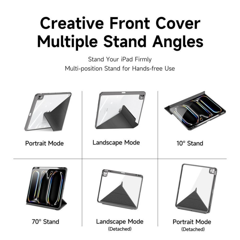 Dux Ducis Magi kaitseümbris on usaldusväärne ja stiilne lahendus sinu iPadi kaitsmiseks. Varustatud automaatse ärkamisfunktsiooni, statiivi funktsiooni, tõstetud servade, täpsete väljalõigete ja stiiluse hoidikuga, pakub see mitte ainult elegantset välimust, vaid ka tõhusat kaitset. Automaatne ärkamine on Dux Ducis Magi ümbrise ainulaadne omadus. Tõsta lihtsalt klapid üles ja iPad "ärkab" automaatselt. Kui kate on suletud, läheb seade "unerežiimile". Tänu sellele ei pea sa iga kord seadet lukustama, mis säästab akut ja aega. Dux Ducis Magi ümbris võimaldab sul vabalt kasutada oma tahvelarvutit nii kirjutamiseks kui ka veebis surfamiseks. Reguleeritav statiiv tagab mugavuse ja ergonoomika ning tõstetud servad kaitsevad seadet täiendavalt. Saad tahvelarvuti ohutult lamedale pinnale asetada ilma kriimustamise riskita. Ümbrise täpsed väljalõiked tagavad, et saad kõiki seadme funktsioone mugavalt kasutada, nagu poleks sellel lisakihti. Sisseehitatud hoidik Apple Pencilile tähendab, et stiilus on alati käepärast ja selle kaotamise oht on palju väiksem. Dux Ducis Magi ümbris on funktsionaalsuse ja elegantsi kombinatsioon. Tagakaas on täielikult läbipaistev, tänu millele näeb stiilne tahvelarvuti isegi ümbrises suurepärane välja. Tugev kaitse tagab, et sinu seade on täiuslikult kaitstud kahjustuste eest, lisamata tarbetut mahukust. Spetsifikatsioon: Mudel: Dux Ducis Magi Materjal: PU + PC + TPU Ühilduvus: iPad Lisafunktsioonid: Statiivi funktsioon, automaatne ärkamine, pastaka hoidik