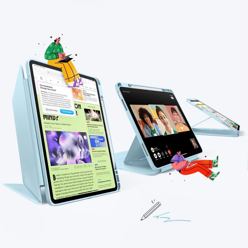 Üks ESR Flip Case suurimaid eeliseid on selle mitmekülgsus – korpuse saab hõlpsasti muuta reguleeritava kaldenurgaga aluseks, mis sobib ideaalselt kirjutamiseks, filmide vaatamiseks, videokõnedeks või joonistamiseks. Sisseehitatud hoidik Apple Pencilile võimaldab mitte ainult pliiatsi hoiustamist, vaid toetab ka magnetilist laadimist, tagades, et sinu pliiats on alati kasutusvalmis.