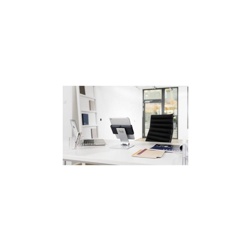 The premium-quality desktop tablet holder is suitable for the use of tablets in offices, at reception desks, in sales and exhibition rooms. With its stylish design and excellent stability, the TABLET HOLDER TABLE is also an ideal tool for presentations.<br><br>- Variable fit for all tablet sizes from 7" to 13"<br>- Symmetrical opening of the holder from 160 to 275 mm<br>- Easy insertion and removal of the tablet<br>- Rotatable: 360° for portrait and landscape format, with snap-in points at every 90°<br>- A tablet can be locked into the holder via allen key supplied, preventing unauthorised removal of the tablet<br>- Additional anti-theft protection via cable lock (not included)<br>- Flexible tilt angle adjustment of the arm: 0° to 88°<br>- Materials: Sheet steel, aluminium, ABS<br>- Dimensions: 155 x 242 x 183 mm (W x H x D)Durable Tablet holder. Mobile device type: Tablet/UMPC, Type: Passive holder, Proper use: Indoor, Product colour: Silver