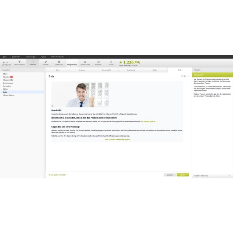 Lexware TAXMAN 2023 kinnisvaraomanikele on usaldusväärne ja põhjalik maksutarkvara, mis on mõeldud spetsiaalselt kinnisvaraomanikele Saksamaal. See tarkvara võimaldab lihtsalt ja turvaliselt koostada ning esitada kuni viit maksudeklaratsiooni ühe seadme kohta. ESD (Electronic Software Download) versioon tähendab, et saad tarkvara mugavalt ja kiiresti alla laadida ning kohe kasutama hakata – füüsilist andmekandjat ei ole vaja.