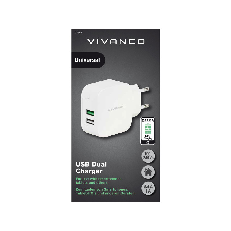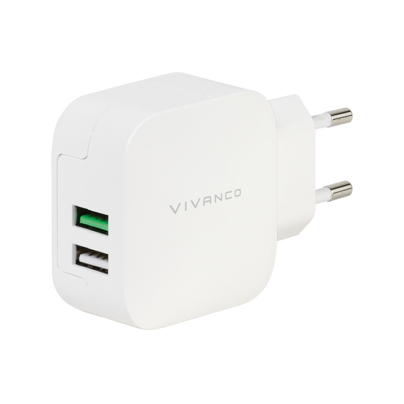 Vivanco laadija USB 2,4A/1A, valge (37563)