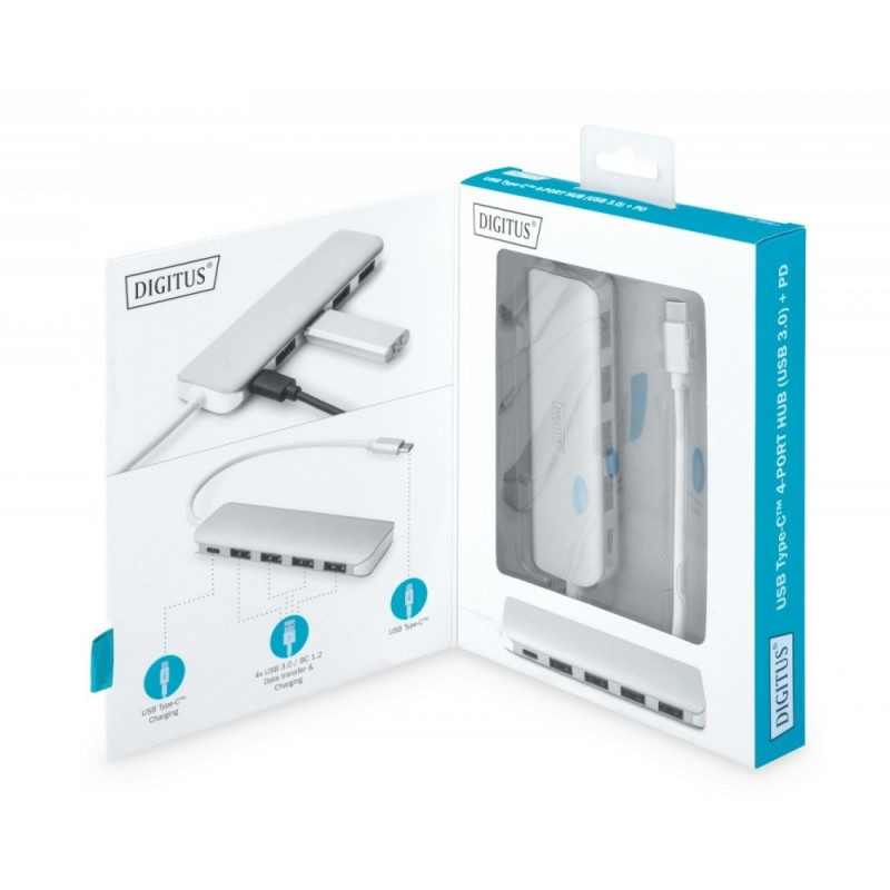 4-port USB-C hubi abil saate laiendada oma sülearvutit USB-C pordiga nelja USB 3.0 pordiga. Hubis on ka USB-C (PD) port, mille kaudu saate oma sülearvutit laadida. Digitus 4-port USB-C hub on tänu oma õhukesele disainile ideaalne lahendus reisimiseks, kuid vajalik ka kodus ja kontoris.