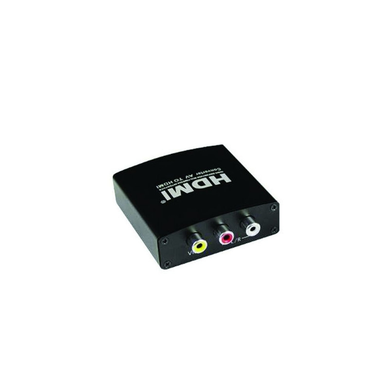 Specifications: AV input, HDMI output, stereo audio output. Input: AV+R/L audio. Input video format: PAL, NTSC3.58, NTSC4.43 and SECAM. Output: HDMI + audio. HDMI output format: 720P 50 / 60Hz, 1080P 50 / 60Hz. Max working current: 400mA. Need DC 5V (1A) power supply. Size: 67x75x25mm.
