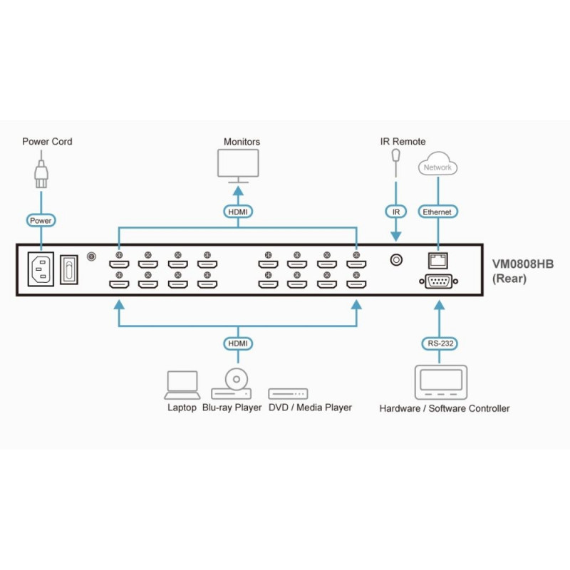 ATEN 8x8 port True 4K HDMI video matrix up to 15m distance