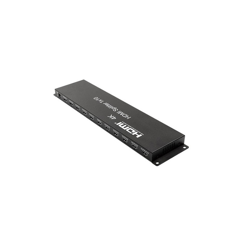 Features: This 1x10 HDMI Splitter uses a single HDMI source accessing 10 HDMI sinks.It allows one HDMI device to be split easily to 10 HDMI-compatible monitors or projectors.HDMI splitter can be placed at the end of a long HDMI cable to regenerate the HDMI signal.Resolution 4K (3840x2160) / 30Hz.Supports HDMI version 1.4b, HDCP1.4.3D video format support.CEC support - 1 output.Supports highest rate of 3.4Gbps and TMDS clock up to 340MHz.8/10/12 bit color depth support.Supports standard AWG26 HDMI cable, input up to 5 meters, output up to 10 meters.Supports single HDMI source, accessing multiple HDMI sinks, the source can be a DVD player, AV receiver, set top box and so on.Built-in IR extension function (control HDMI sources via IR-RX of HDMI repeater).Serial port online upgrade.EDID (Extended Display Identification Data) management support (10 EDID modes).