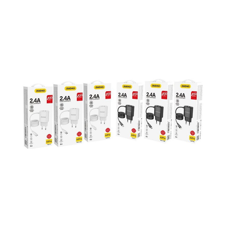 Dudao A2Pro on kompaktne seinakontakti laadija, millel on 2 USB porti ja sisseehitatud Lightning kaabel. See võimaldab teil laadida korraga 3 seadet. See on valmistatud kvaliteetsetest, tulekindlatest materjalidest (ABS + PC), äärmiselt vastupidav kõrgetele temperatuuridele ja võimalikele kukkumistele. Sellel on intelligentne juhtimissüsteem, mis reguleerib pinget konkreetsele seadmele ning mitmeid kaitsefunktsioone, sealhulgas ülelaadimise, ülekuumenemise ja lühiste eest. Lisaks on laiaulatuslik toitepinge (100 - 240V), tänu millele saate adapterit ohutult kasutada üle maailma.