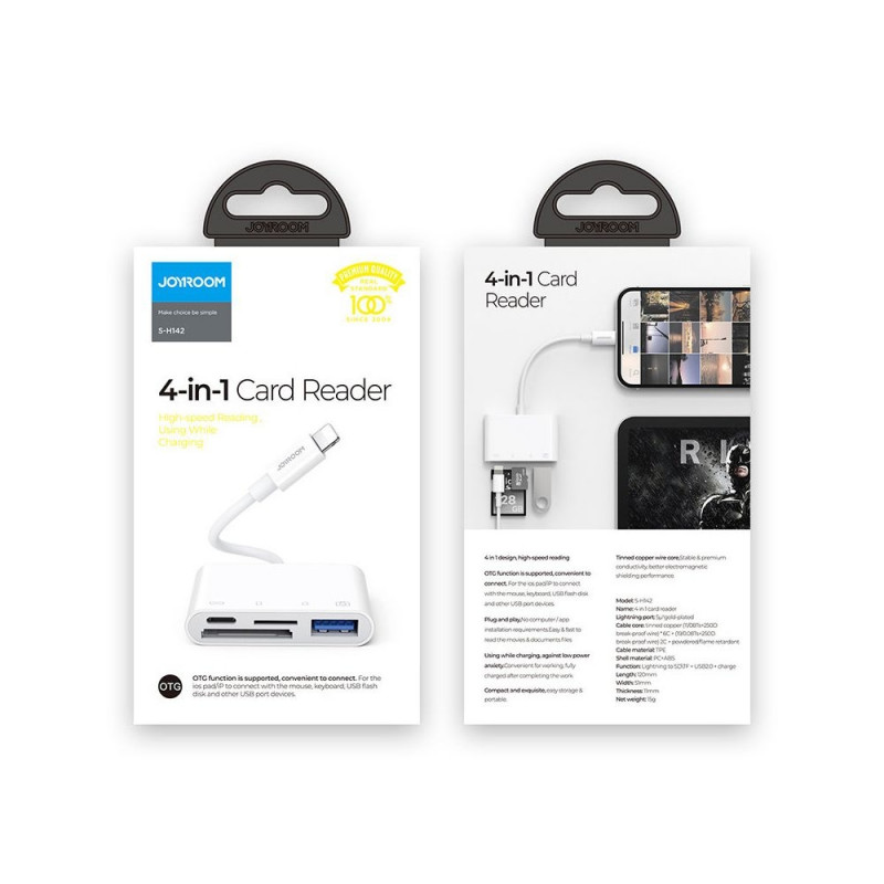 Joyroom S-H142 Lightning OTG HUB - USB-A 3.2 / Lightning / SD, TF card reader - white