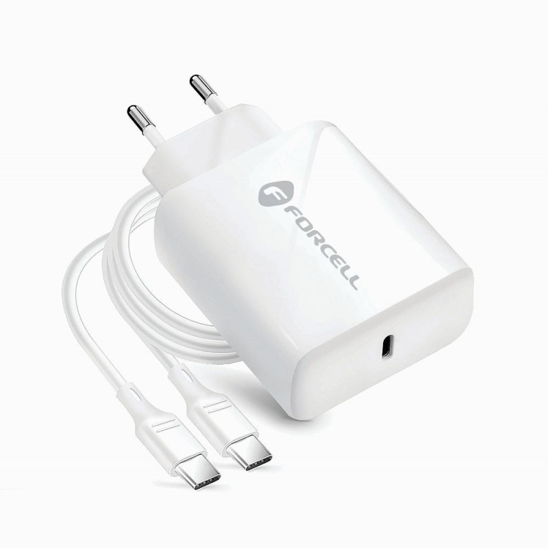 FORCELL F-ENERGY TFK-TC-25WPD travel charger Type C + cable Type C to Type C PD Q.C 3A 25W white