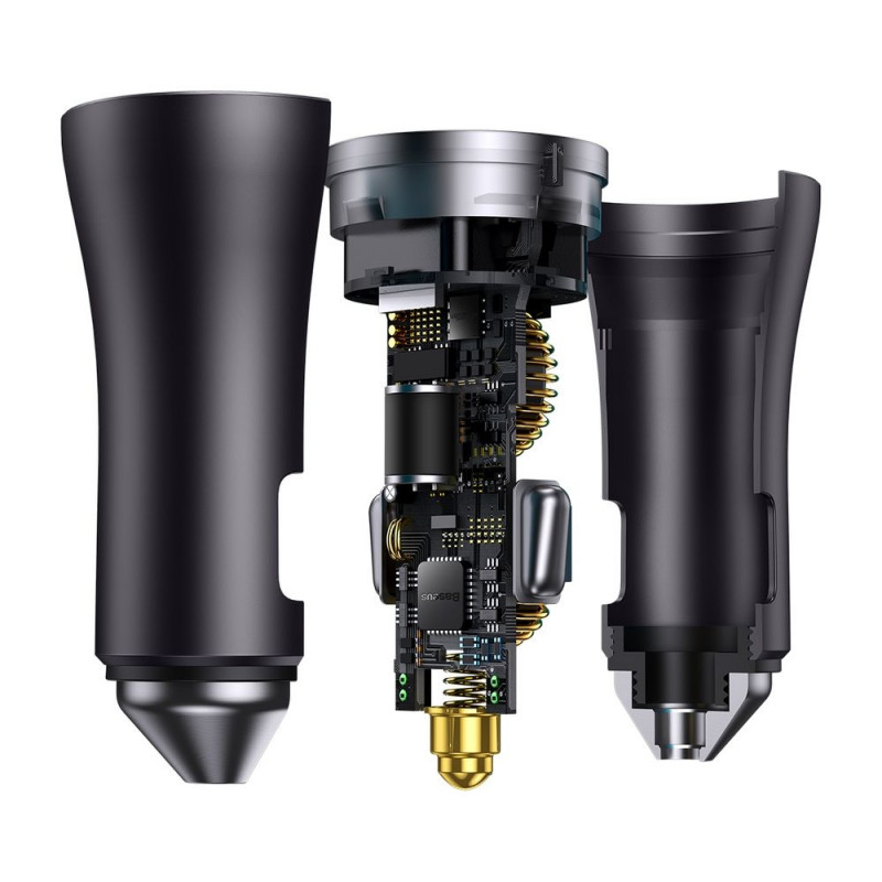 Kas vajad autolaadijat, mis suudab korraga kiiresti laadida kahte seadet? Sõidu ajal ühenda need Baseuse seadmega, millel on 2 USB-C porti. See toetab kiire laadimise protokolle ja BPS II kiirlaadimise tehnoloogiat. Laadija pole mitte ainult tõhus, vaid ka väga esteetiline. Maitsekas metallkorpus näeb autos hea välja ja on ka ülekuumenemiskindel. Seadmel on ka muud sisseehitatud kaitsed, näiteks ülekoormuse või lühise vastu. Tänu ideaalsele kujule püsib see stabiilsena ka konarlikul teel sõites.