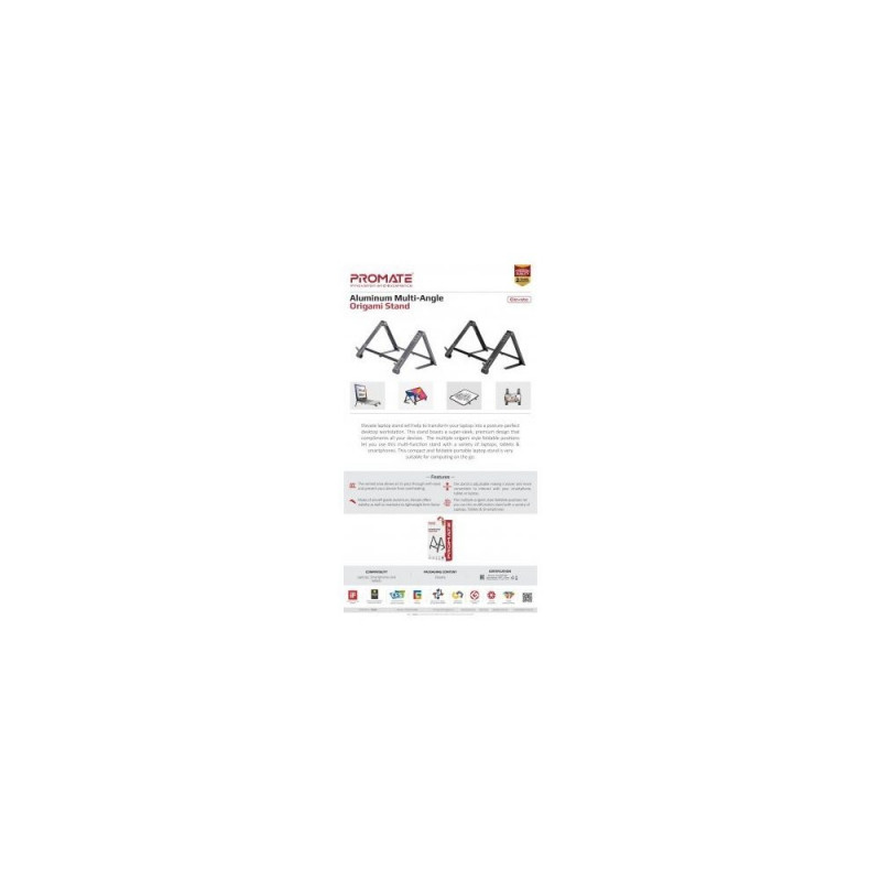 Promate Elevate is a functional and practical transformer stand with position adjustment in three planes. It will add ergonomics and comfort when working with a laptop, tablet or smartphone.