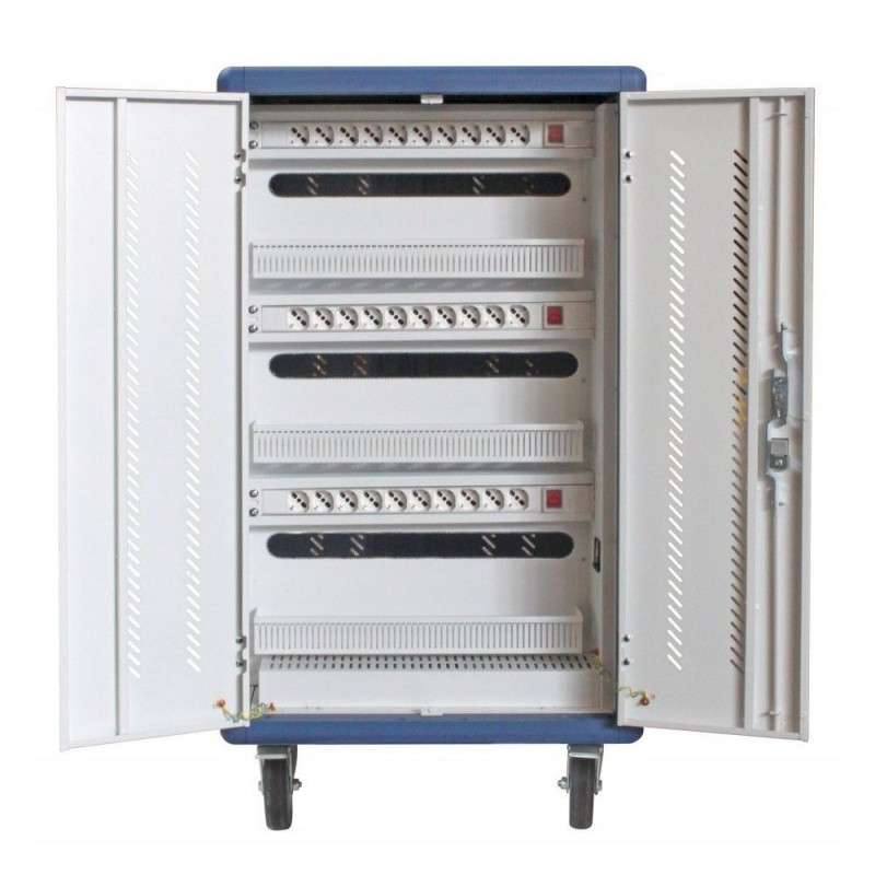 | Other features | USB port voltage: 5V / 2.1A Number of AC sockets: 30 (3x 10) AC socket type: Schuko/UNEL/Universal Wheel size: 5 Transport handles: 440 x 90 mm Construction material: 1.5mm thick powder-coated sheet metal Power supply: Input voltage: 110 - 240V AC, 50-60H |