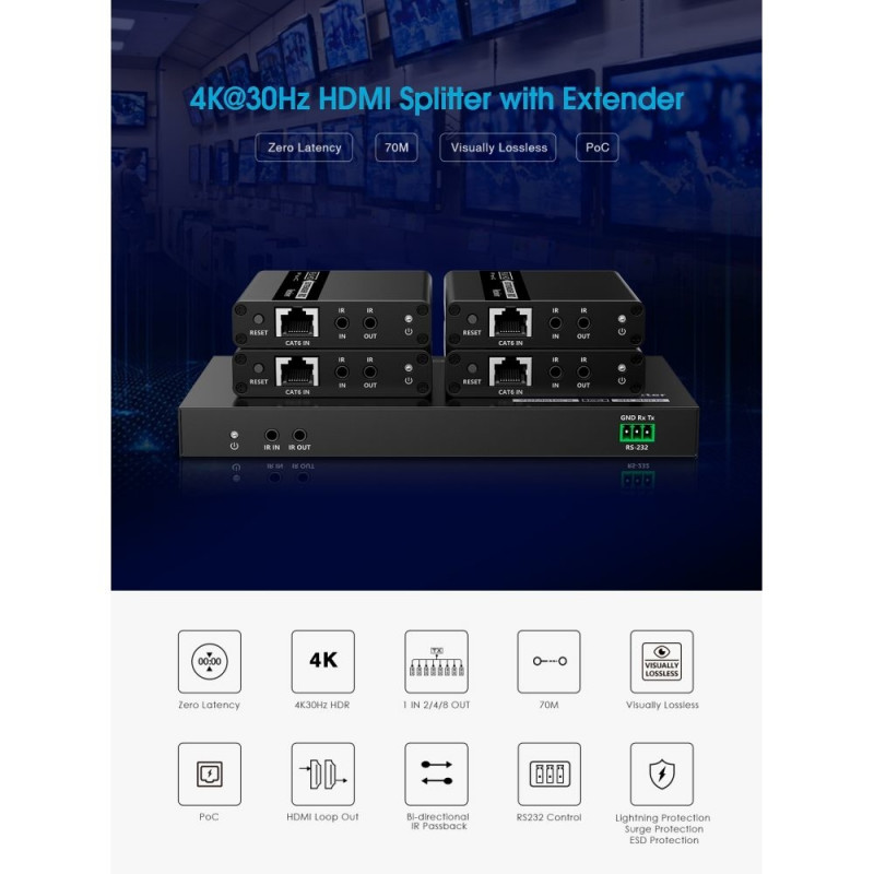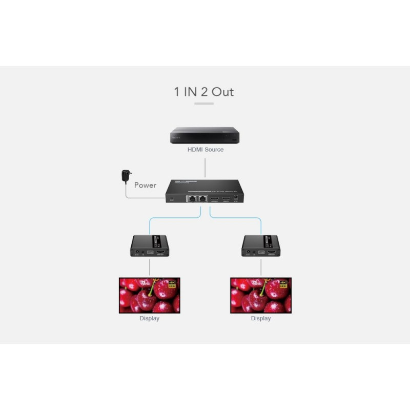 PremiumCord HDMI 1-2 splitter+extender via CAT6/6a/7, UHD 4K@60Hz up to 70m This HDMI extender splitter works with 2 HDMI CAT6 extender receivers to distribute and extend 1 HDMI source to 2 HDMI displays over single CAT6/6a/7 cable up to 70m. The higOsta kohe, viimased eksemplarid laos!