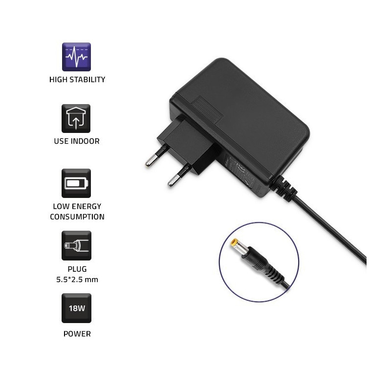 Plug in power supply 18W 9V, 2A, 5.5x2.5