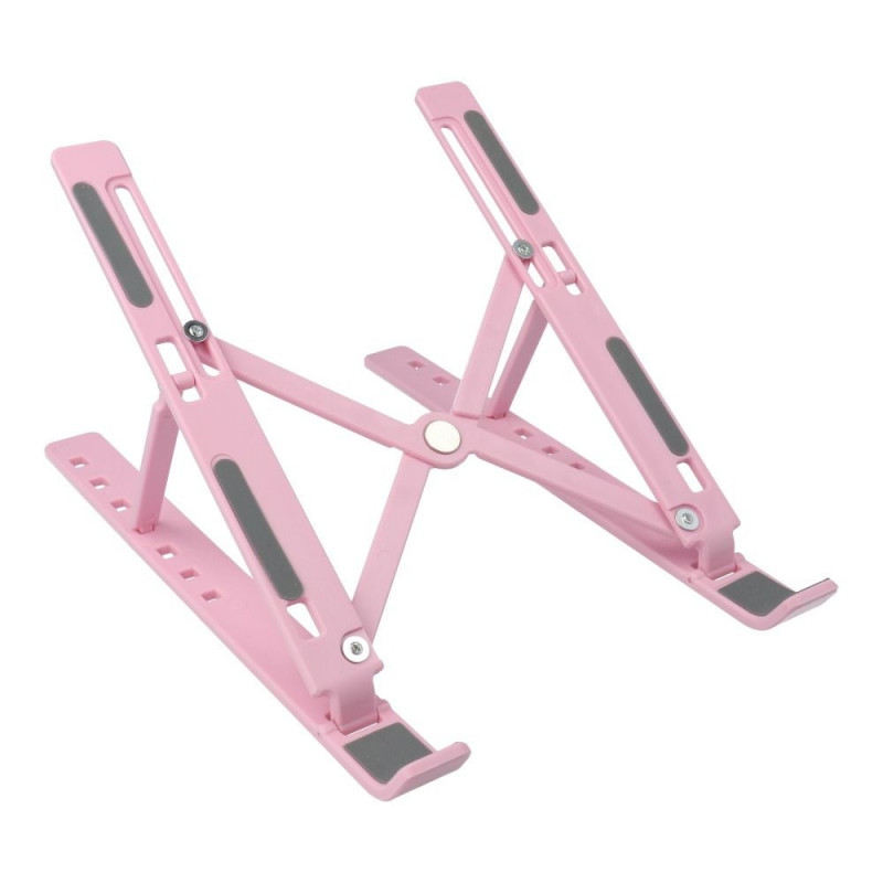 Sülearvuti või tahvelarvuti hoidja. See hõlbustab seadme kasutamist. Tänu väikesele suurusele ei võta see palju ruumi. Valmistatud vastupidavatest komponentidest, see on vastupidav kahjustustele ja tagab pikaajalise kasutamise. Kokkupandav disain muudab toote hõlpsaks hoiustamiseks kasutamise ajal. Kaldenurga reguleerimine võimaldab seadme asendit hoidikus individuaalsetele vajadustele kohandada. Reguleeritav kätevaheline kaugus võimaldab paigutada mitte ainult suuri seadmeid, nagu tahvelarvutid ja sülearvutid, vaid ka nutitelefone. Libisemisvastased sisestused takistavad seadme liikumist ja kaitsevad seda kriimustuste eest. Spetsifikatsioon: Suurus: 17 * 23,3 * 14,5 cm