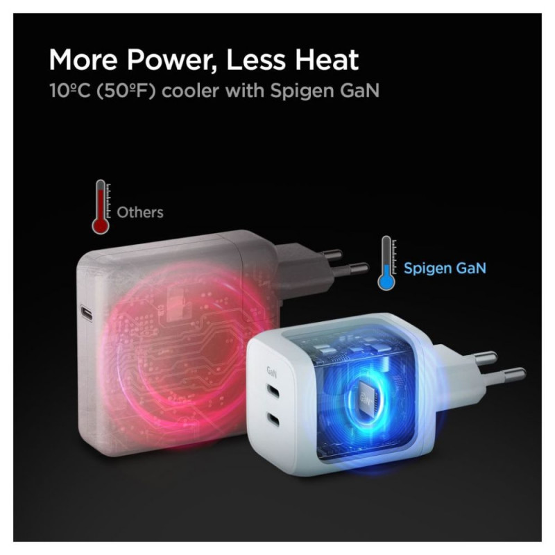 Toalaadija adapter PowerArc 65W Dual, 2x USB-C juhtmele, valge, PD 3.0 GaN kiirlaadimine, PE2106EU,