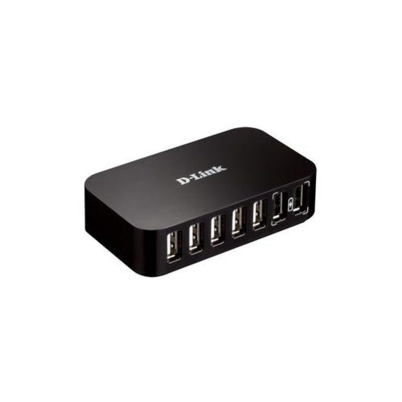 The D-Link DUB-H7 7-Port USB 2.0 Hub provides an easy way to add 7 additional USB ports to your PC or Mac, allowing you to connect more devices. With its Fast Charge Mode, each of the USB ports can provide sufficient power to connect and charge iPads and tablets. <br><br><b>Add Seven USB 2.0 Ports to Your Computer</b><br><br>With the DUB-H7 7-Port USB 2.0 Hub, you can conveniently add 7 additional USB 2.0 ports to a notebook or desktop computer, allowing you to connect 7 more USB devices, such as digital cameras, printers, external hard drives, keyboard/mouse, flash drives and tablets. USB 2.0 technology supports fast data transfer rates of up to 480 Mbps, which means that you can save/access files and sync your devices faster compared to previous USB standards.<br><br><b>Fast Charge Your Devices</b><br><br>The DUB-H7 features 7 Fast Charge USB ports that are designed to provide increased maximum charging current of up to 2.4 A. This makes it perfect for charging power-hungry devices like the iPad or tablets quickly, even with their high-capacity batteries. <br><br><b>Compact and Portable</b><br><br>The DUB-H7 does not require to be connect to a computer to charge your devices. With it’s compact size, so you can take it with you on your travels to charge your smartphone, tablet and camera without the need to bring multiple chargers. Alternatively, you can use the DUB-H7 without the power adapter to easily add 7 additional USB port to any computer.<br><br><b>Plug and Play</b><br><br>Simply connect the DUB-H7 to your notebook or desktop computer to add 7 additional USB ports. It’s that easy, no drivers or software installation required. D-Link DUB-H7. Host interface: USB 2.0 Type-B, Hub interfaces: USB 2.0. Data transfer rate: 480 Mbit/s, Product colour: Black, Certification: FCC, CE, C-Tick, VCCI, IC, RoHS. Input voltage: 5 DC, Input current: 3 DC, Output voltage: 5 V. Windows operating systems supported: Windows 10, Windows 7, Windows 7 Home Basic, Windows 7 Home Basic x64, Windows 7 Home Premium,..., Mac operating systems supported: Mac OS X 10.11 El Capitan, Mac OS X 10.12 Sierra, Mac OS X 10.13 High Sierra, Mac OS X 10.14.... Width: 57 mm, Depth: 99 mm, Height: 25 mm