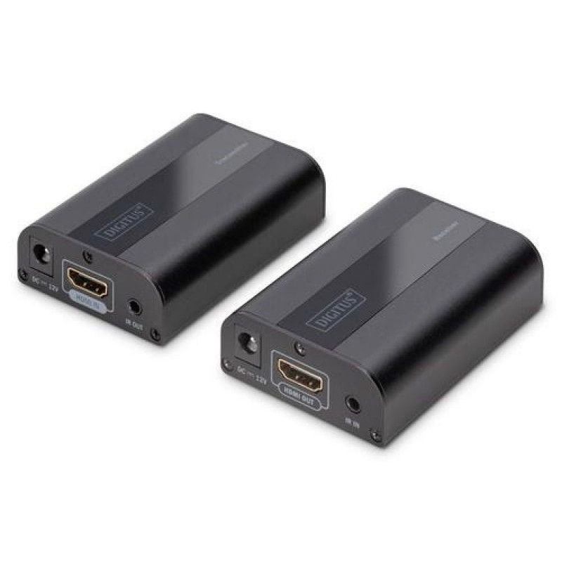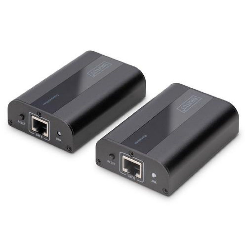 Extends the maximum length for HDMI cables to up to 70 m using only a single network cable between a transmitter and a receiver unit<br><br>- Extends 4K/60Hz video content up to 70 m<br>- Supports Ultra HD (60Hz), 4096 x 2160p resolution<br>- PoC (Power over Cable) - only one unit requires an external power supply unit<br>- Integrated IR interface - simple control of the input source with a remote control<br>- Supports CAT 6 or higher network cables<br>- Supports HDCP 2.2<br><br>The Digitus 4K Extender Set offers an extender solution for the highest demands - both for high-resolution graphics display and for absolutely smooth video playback. It transmits digital 4K/60Hz video and audio signals over a maximum length of up to 70 m. CAT 6 or higher network cables are supported. It consists of a transmitter and receiver unit. Also included are two infrared units (transmitter, receiver) via which the remote control of the connected input source can be used.Digitus 4K HDMI extender set, 4K/60Hz. Type: Transmitter & receiver, Connectivity technology: Wired, Maximum transfer distance: 70 m. Transmitter video port type: HDMI. Receiver local video port type: HDMI. AC adapter output voltage: 5 V, AC adapter output current: 1 A. Transmitter width: 56 cm, Transmitter depth: 77.5 cm, Transmitter height: 27 cm