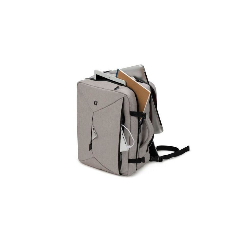 Simplicity. Functionality. Inspired, contemporary design. These are the guiding principles that define the EDGE product family. Exceptional materials, colours and highlights accentuate your own individual style. The Backpack Dual Plus EDGE convinces by its versatility. The intelligent backpack/toploader combination is designed to fit MacBooks and Ultrabooks but offering maximum protection to other notebooks. The padding made of EVA foam within the notebook compartment perfectly adapts to the contours of your device and an elastic fastening strap keeps your notebook securely in place.<br><br>You can easily switch between using it as a shoulder bag and backpack - without compromising on ergonomics. With just a few simple steps the backpack transforms into an elegant shoulder bag. Therefore, simply stow the carrying straps within the back panel and install the padded shoulder strap. The cushioned and length-adjustable shoulder straps ensure comfortable transportation. Perfect for business trips and weekends due to its 29 litres. A comfortable carrying handle on the long side of the bag provides additional travel flexibility and the functional back panel can be used to attach the Backpack Dual Plus EDGE to a trolley handle - pure mobility. The generous main compartment offers space for documents and features an internal zip pocket for accessories, as well as a generous zipped divider with fixation strap to hold your clothes and laundry in place when traveling. Your tablet (up to 10.5") can be safely stored in the padded slip pocket. The practical and easy-access insert pockets in the front compartment allow you to organize your personal equipment such as cables, business cards, IDs and smartphone. In the additional zip pocket at the front panel other important accessories are to hand at all times. Use the two practical side pockets for water bottle, umbrella or keys for quick access. Available in two colour variations.DICOTA Dual Plus EDGE. Case type: Backpack, Maximum screen size: 39.6 cm (15.6"), Carrying handle(s). Weight: 1.19 kg. Surface coloration: Monochromatic